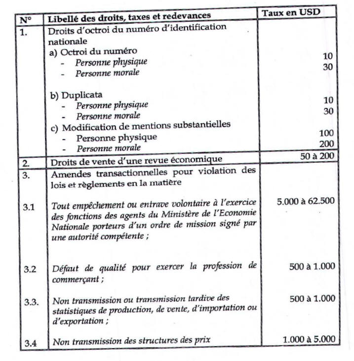 de l’Economie Nationale sont fixés en Dollars américains (USD), payables en