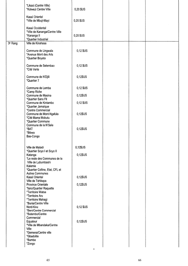 Les taux des taxes, droits et redevances repris aux annexes du présent Arrêté sont acquittés en Francs Congolais au taux officiel de la Banque Centrale du Congo.