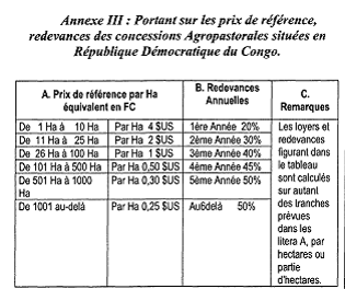 La redevance annuelle sur les concessions ordinaires dont les taux sont fixés aux annexes II et III du présent