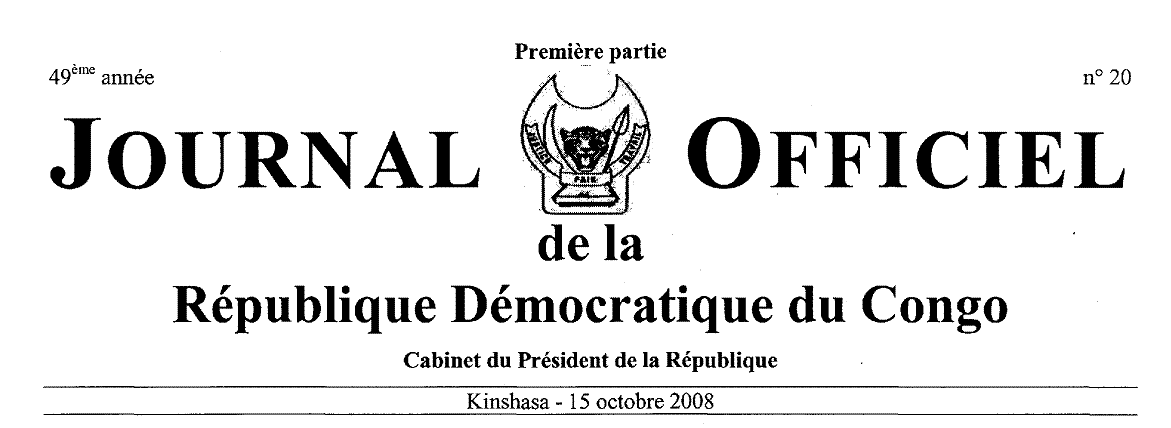 24 septembre 2008 - Décret n° 08/20 portant organisation et fonctionnement d'une Cellule Nationale des Renseignements Financiers. CENAREF en sigle, col. 10.