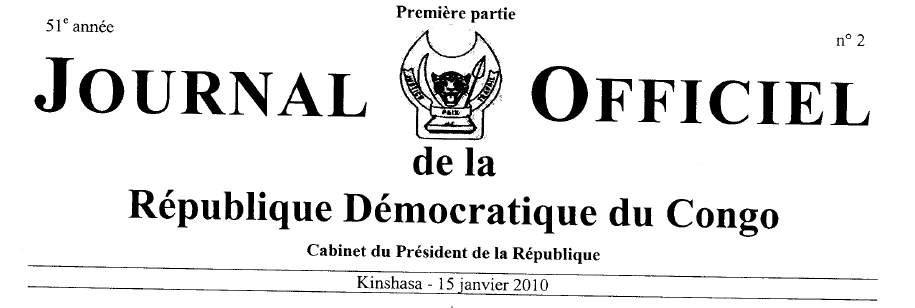 09 janvier 2010 - Ordonnance n°10/018 portant révocation d'un membre du Gouvernement, col. 2. GOUVERNEMENT Ministère de la Justice, 04 décembre 2009 - Arrêté ministériel n° 204/CAB/MIN/J/2009 approuvant la Décision n° 005/EJCSKICS/12/2002 du 21 octobre 2002 portant ratification et publication des travaux de l'Assemblée générale extraordinaire de l'association sans but lucratif confessionnelle dénommée « Eglise de Jésus-Christ sur la Terre par le Prophète Simon Kimbangu » en sigle « E.J.C.S.K. » tenue à Nkamba du 07 au 21 octobre 2002 ainsi que les modifications apportées aux statuts de l'association sans but lucratif confessionnelle dénommée « Eglise de Jésus-Christ sur la Terre par le Prophète Simon Kimbangu » en sigle « E.J.C.S.K. », col. 3. 04 décembre 2009 - Arrêté ministériel n° 205/CAB/MIN/J/2009 relatif à la protection et à l'unicité de l'association sans but lucratif confessionnelle dénommée « Eglise de Jésus-Christ sur la Terre par le Prophète Simon Kimbangu » en sigle « E.J.C.S.K. », col. 4. Ministère de l'Urbanisme et Habitat, 29 décembre 2009 - Arrêté ministériel n° 019/CAB/MIN.URBAB/CJ/SC/2009 portant révision des structures organiques des divisions urbaines de l'Urbanisme et Habitat pour la Ville de Kinshasa, col. 5. Texte Ministère des Affaires Foncières, 07 décembre 2009 - Arrêté ministériel n° 147/CAB/MIN/AFF. FONC/2009 portant création d'une parcelle de terre n° 45.251 à usage agricole du plan cadastral de la Commune de N'sele, Ville de Kinshasa, col. 7. COURS ET TRIBUNAUX ACTES DE PROCEDURE Ville de Kinshasa RC 2.081 - Signification du jugement - Madame Yapay Mampia, col. 8.